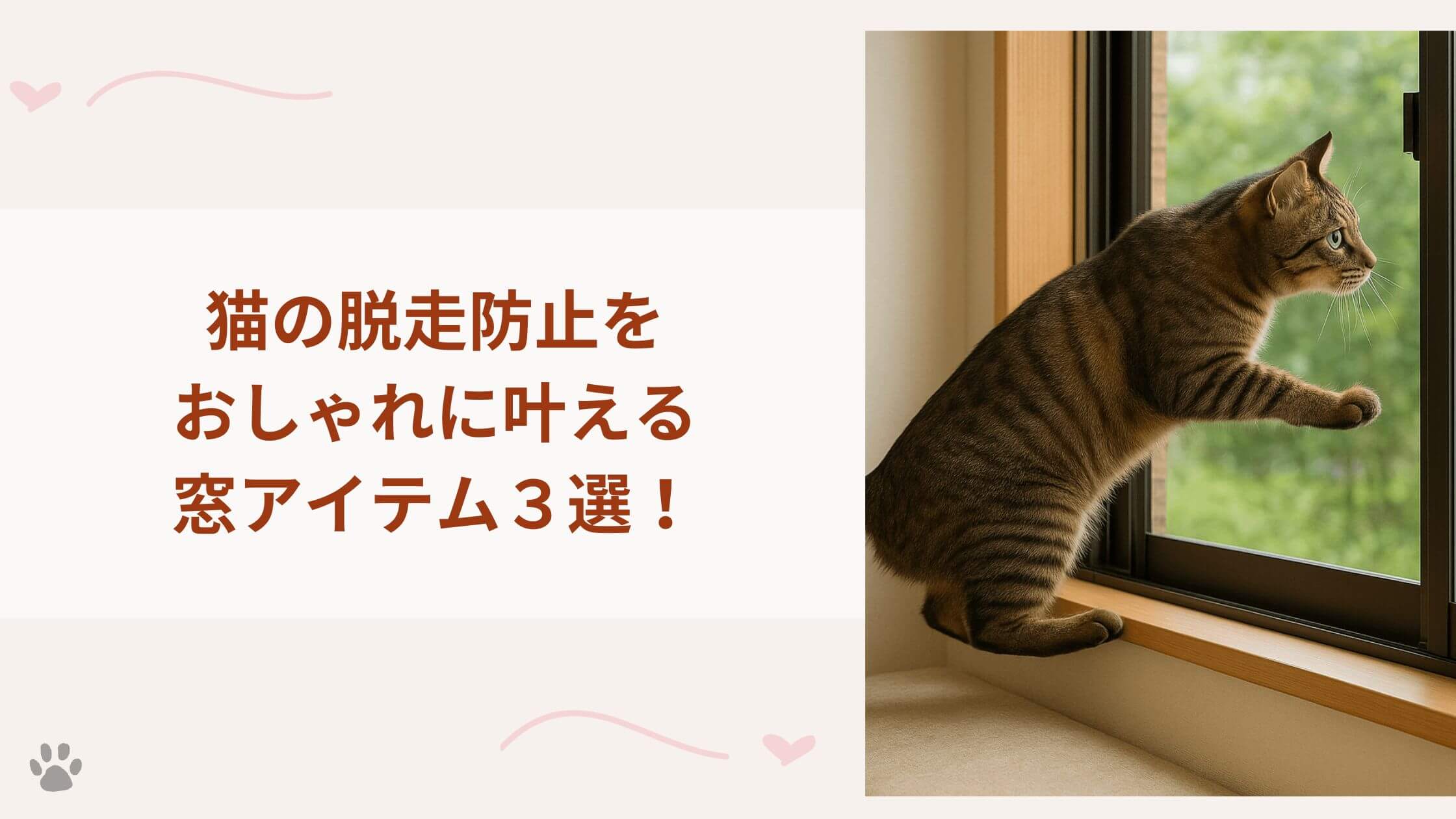 そこで今回は、「猫の安全」と「おしゃれな見た目」を両立できる窓用の脱走防止アイテムを3つに厳選してご紹介します!